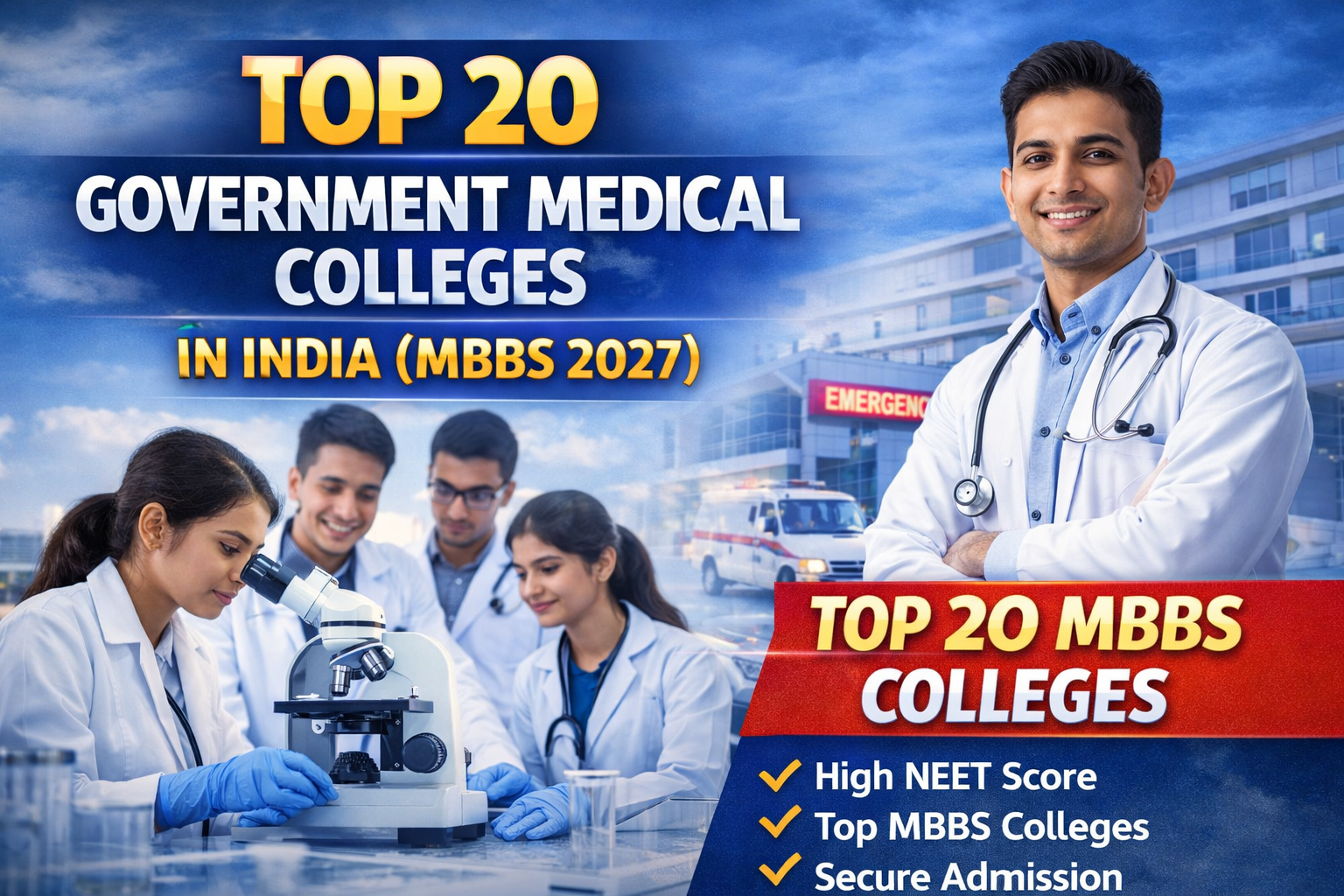 Top 20 Government Medical Colleges in India for MBBS : Choosing the right college is the first step toward a successful medical career. The Top 20 Government Medical Colleges in India for MBBS offer excellent education, affordable fees, and high-quality training ๐ฅ. In 2027, competition is expected to increase, so students must understand eligibility, admission process, and latest updates before applying. This guide will help you explore the best options in simple language.